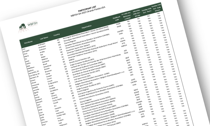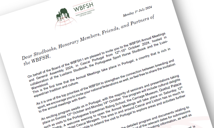 Every year the WBFSH Annual Meetings and General Assembly are hosted by one of the studbooks members of the WBFSH. Check out previous years assemblies: